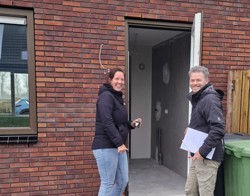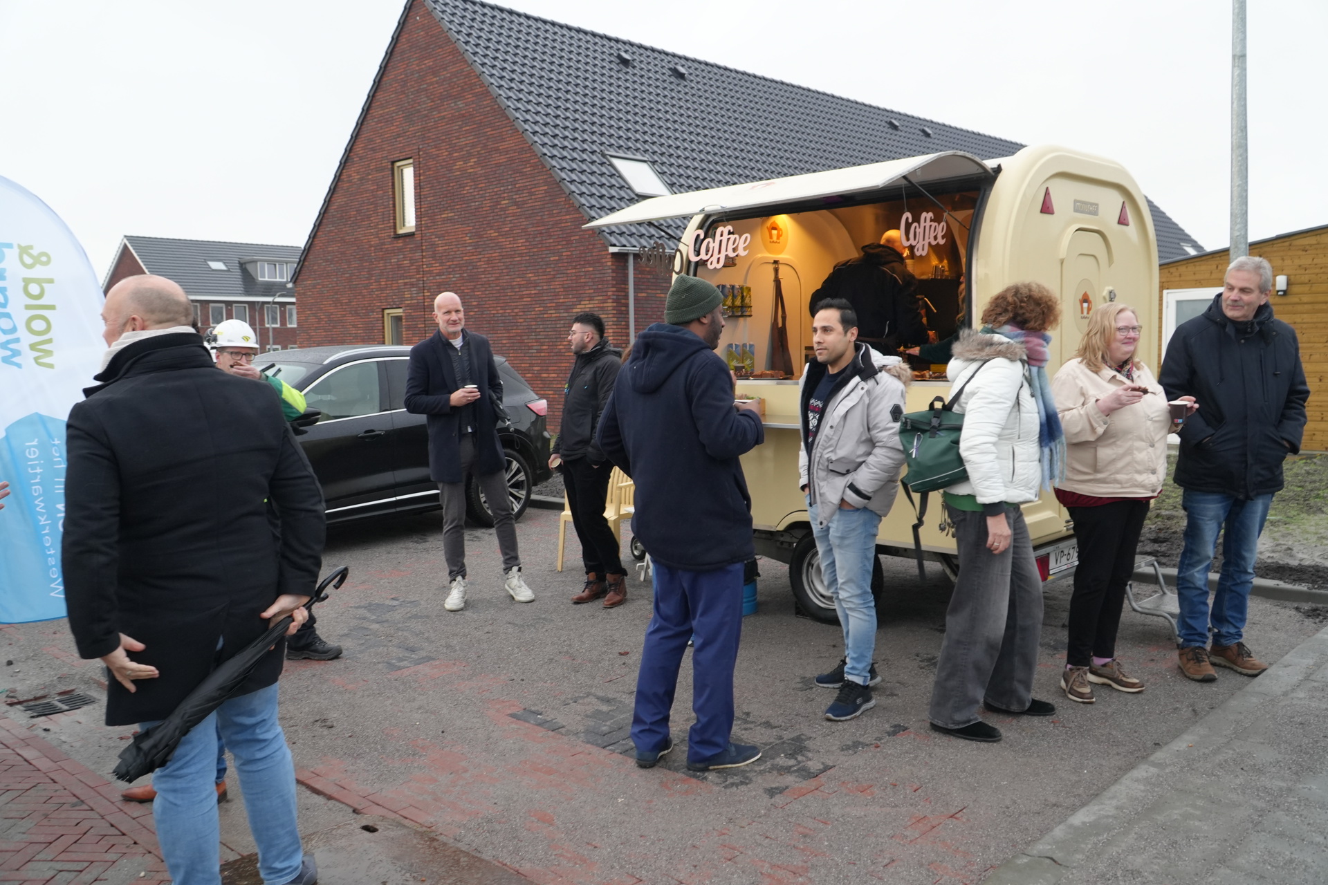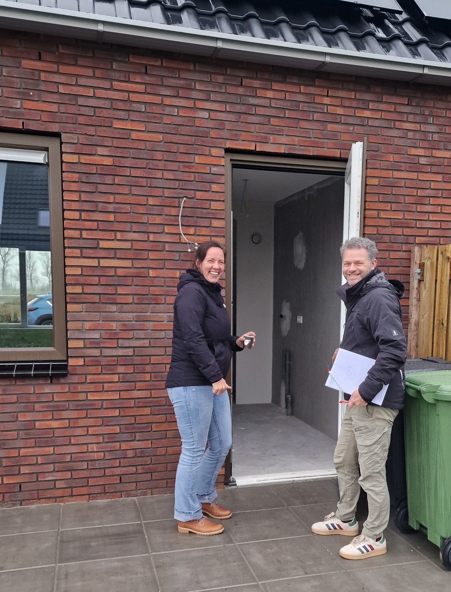 Vandaag, 25 november, was er een sleutelfeestje in Zuidhorn. Aan de Holtven en Over de Tocht kregen de huurders de sleutel van één van de 12 nieuwe woningen. Het was regenachtig en guur, maar de sfeer was er niet minder om.