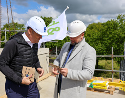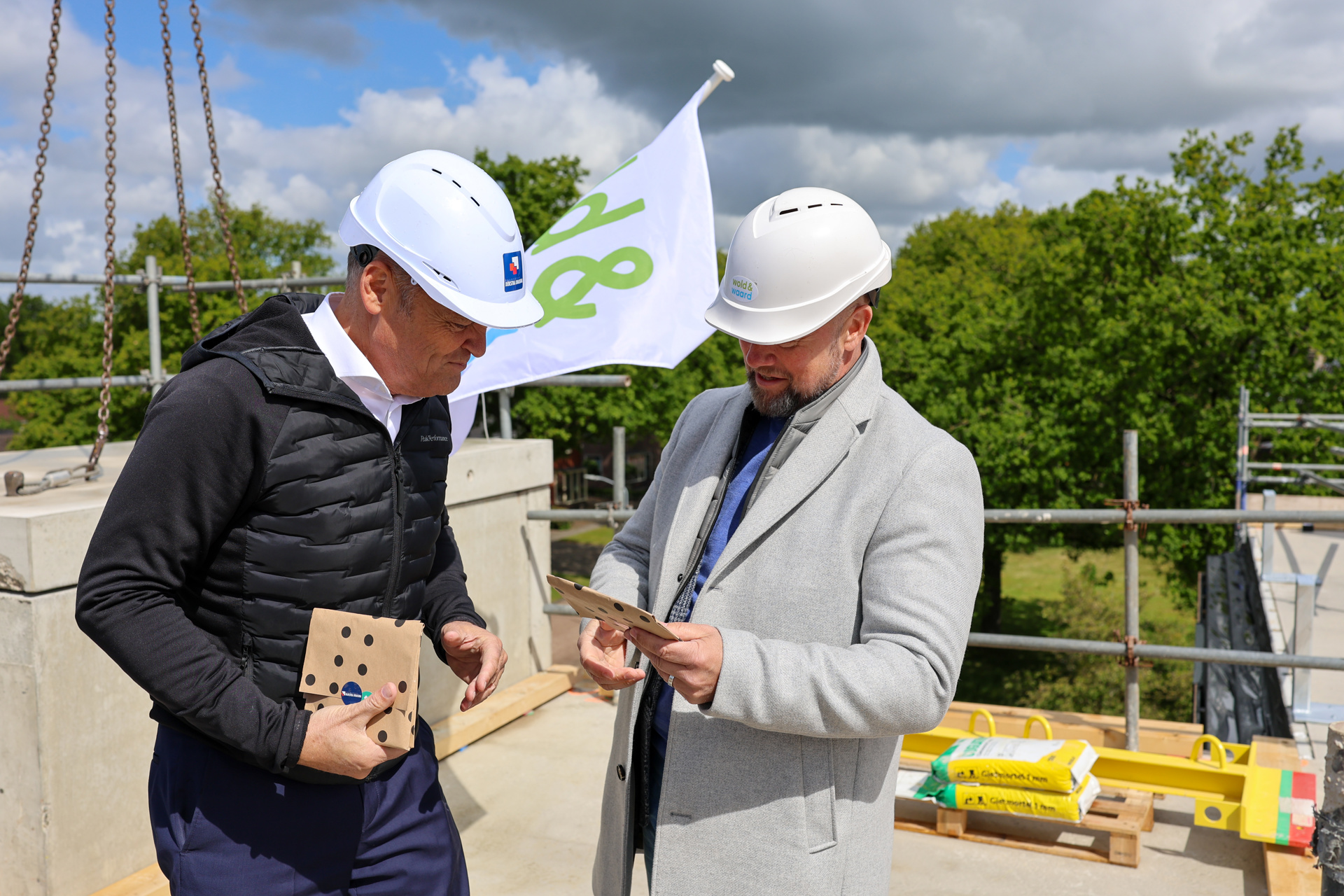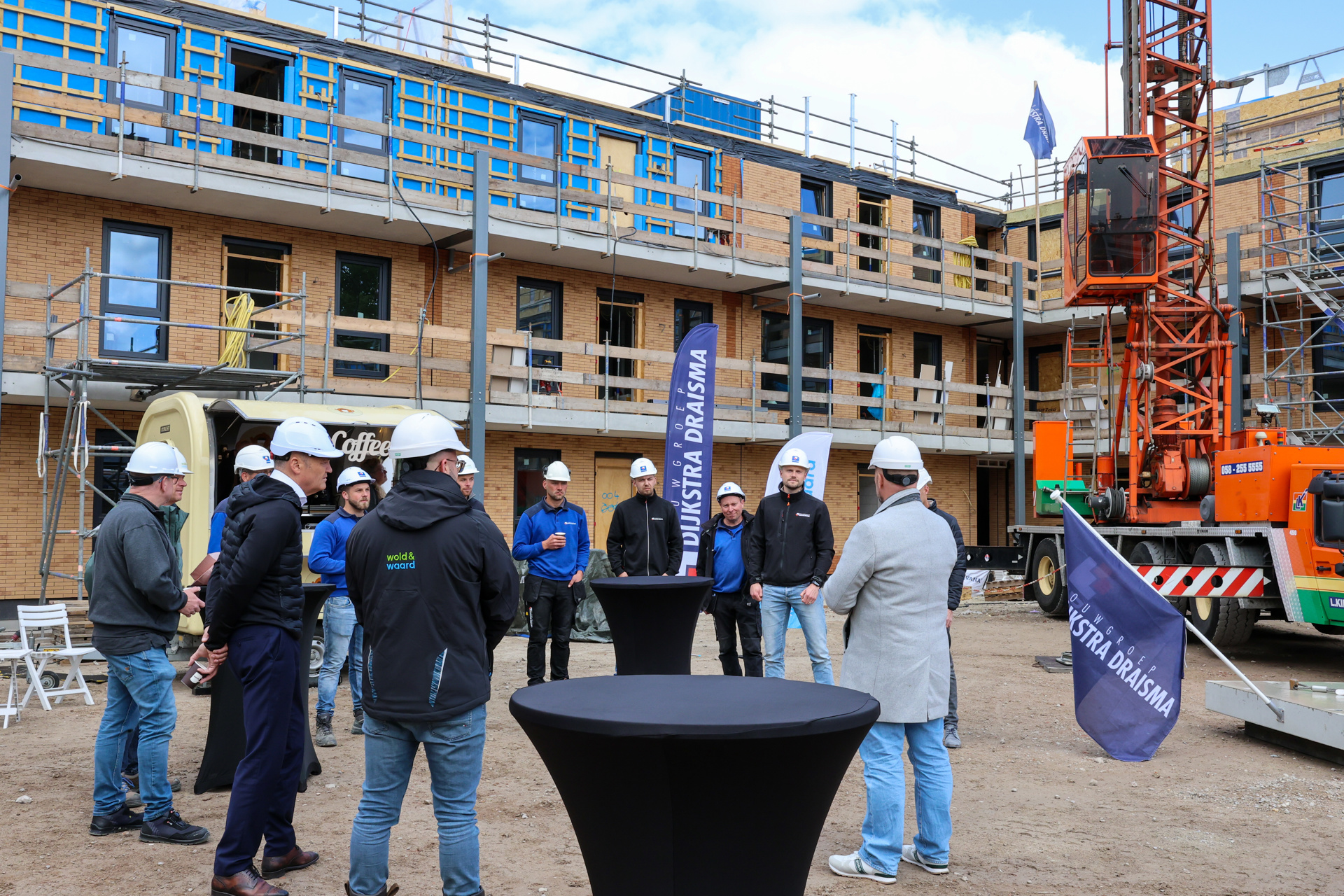 Natuurlijk moest dit gevierd worden en dat gebeurde op 23 mei. Ton Schroor, directeur van Woningcorporatie Wold & Waard en Biense Dijkstra, directeur van Bouwgroep Dijkstra Draisma, waren aanwezig om dit feestelijke moment samen met alle vakmannen te vieren.