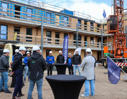 In november startte de bouw van een appartementencomplex met 3 woonlagen en 33 huurwoningen in Leek. Inmiddels is het hoogste punt bereikt. Woningcorporatie Wold & Waard en Bouwgroep Dijkstra Draisma zijn erg tevreden met de snelheid waarin de bouw verloopt.