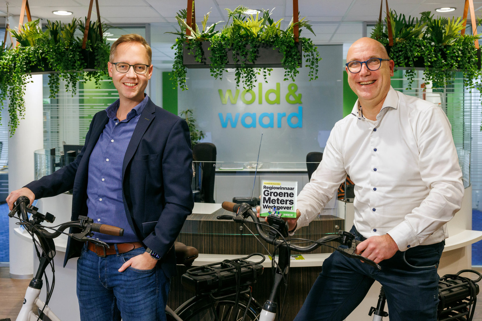 Met trots kunnen we melden dat Wold & Waard op dinsdag 26 november is uitgeroepen tot beste Groene Meters Werkgever van Nederland! Tijdens de feestelijke landelijke prijsuitreiking ontvingen we de award uit handen van juryleden Jan Buursma en Romee Nicolai van de Universiteit van Amsterdam. Onze organisatie werd geprezen om het innovatieve, moedige en duurzame mobiliteitsbeleid dat we voeren.