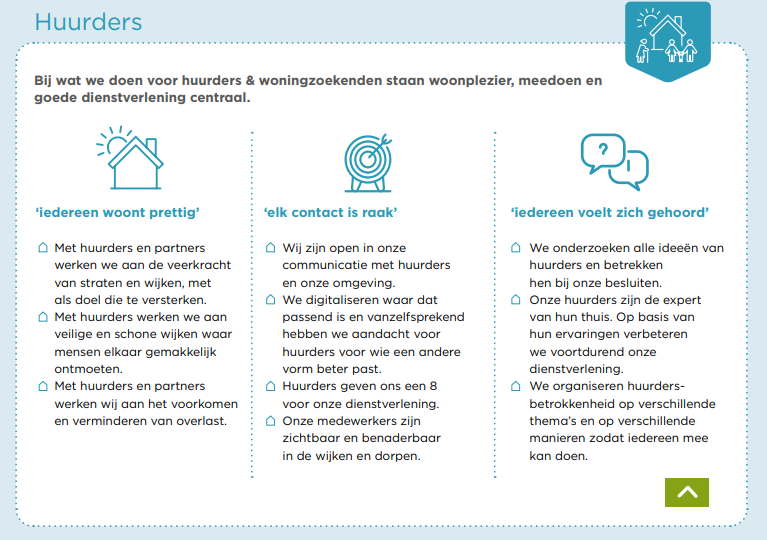 Wij gaan voor persoonlijk contact op basis van vertrouwen. Wij zijn zichtbaar, benaderbaar en aanspreekbaar voor huurders en onze omgeving.